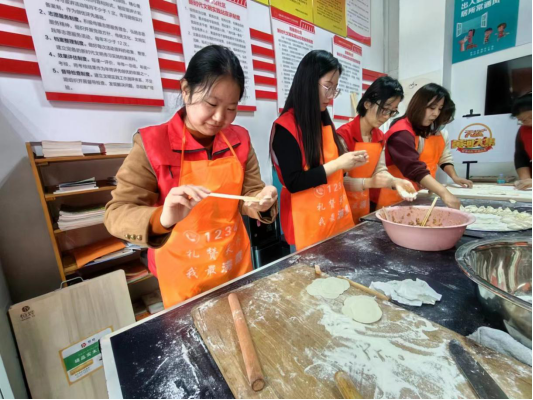 接案中期:通过社会工作者的介入,服务对象参与小鲁社区举办的高龄老人“一餐热饭,一顿陪伴”活动,社工与社区一起包水饺,为老年人送温暖,老年人齐聚一堂,说说笑笑,让杨奶奶生活变得丰富起来。
