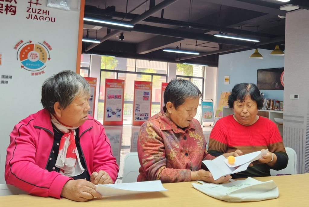 本次活动由“传递小球”拉开序幕,老人们先围坐在一起,利用a4纸将小球依次传递。传递过程中需要老人们相互配合,考验彼此的耐心和默契。小球在纸上跳跃,吸引着全场所有人的目光。“慢一点,低一点,近一点。”大家在一次次传递中摸索经验,最终小球成功回家,老人们顺利完成了挑战。
