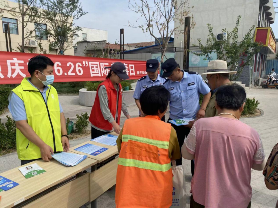 为进一步加大禁毒宣传教育力度,提高辖区居民识毒、防毒、拒毒意识和能力,6月26日,唐王街道社工站与街道派出所、街道禁毒专员及街道网格员在辖区文化广场共同举办以“健康人生 绿色无毒”为主题的国际禁毒日宣传活动。