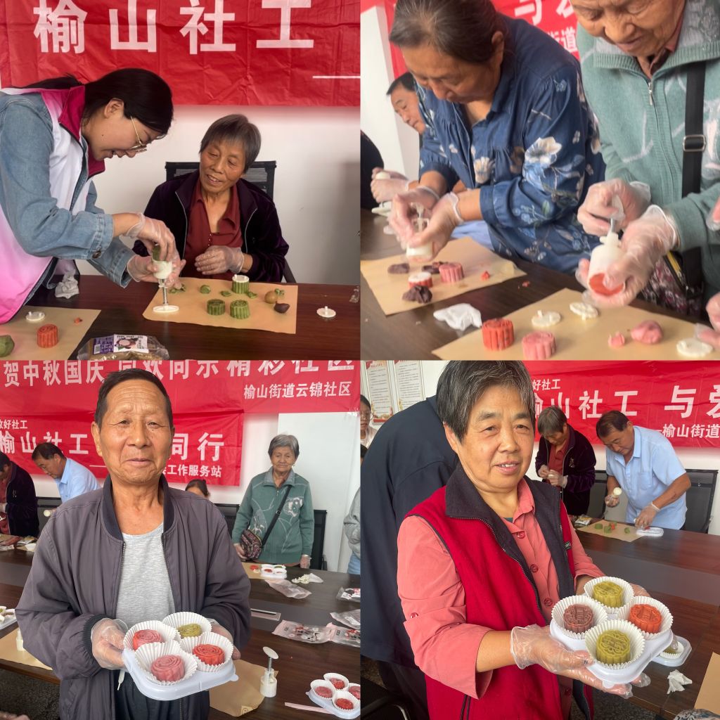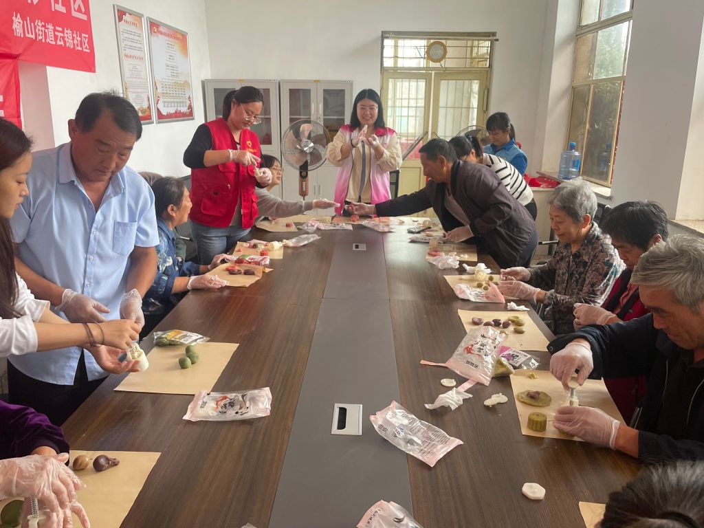 秋风送爽,丹桂飘香。在中秋节即将来临之际,为弘扬中华民族传统节日风俗文化,营造浓厚的节日氛围,提升老年人的生活幸福感,9月26日上午,榆山街道社工站在云锦社区开展“同心同爱贺中秋,同欢同乐庆国庆”手工月饼DIY活动。