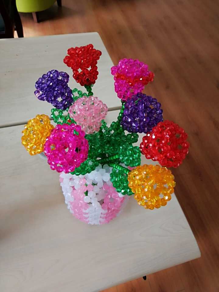 “祝你幸福”手工小组成员历时四节课,在社工的带领与成员间的互帮互助下,完成了手工串珠作品“团结玫瑰”的制作,将10朵鲜艳多姿的玫瑰花插进了精致的花瓶中。