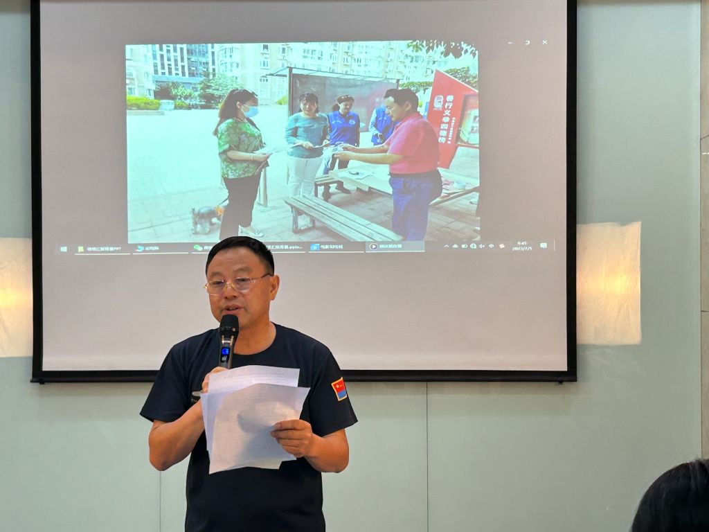 (4)微创投项目内部结项总结会。向社区书记、社区“聚爱·益起来”志愿者协会代表、服务对象代表等汇报项目服务成效。