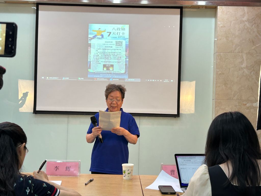 (2)项目成员发挥个人专长,面向建新街道辖区居民开展八段锦线上打卡活动共计2期。通过每日小视频拆解一个八段锦动作,带领居民线上云锻炼。教练志愿者线上批阅学员的跟练视频后,在当日打卡结束后对学员动作进行指导和纠正,确保大家安全规范练习,推动运动健康良好风尚形成;