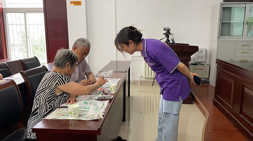 活动伊始,社工向服务对象进行自我介绍,让服务对象认识并了解社工;之后进行“大西瓜、小西瓜”的热身小游戏,活跃现场氛围,社工设置了淘汰者分享小暑知识小惩罚。服务对象一开始不知从何讲起,社工从天气炎热需要注意什么,适合吃什么水果什么等方面进行引导,服务对象由此开启了思路与大家一起分享;随后社工就小暑时节的习俗以及注意事项为大家进行普及,大家仔细倾听耐心学习;扇子从古至今一直是我们夏季的必不可少之物,接下来社工引导大家一起制作精美团扇为炎热的夏季带了一丝清凉,活动现场社工引导居民朋友互相帮助学习,并耐心指导进展缓慢的服务对象。社工使用“正强化”的手法激励具有志愿精神的,也鼓励虚心学习的阿姨,由此激发大家互相学习,发挥志愿者精神的良好品质。