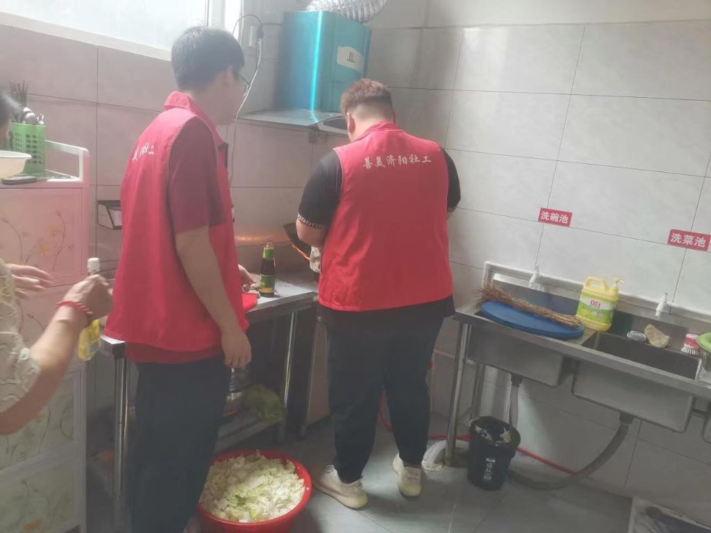 与此同时,社工们帮助手部动作不灵敏的残疾人练习精细动作,带领残疾人们做娱乐活动。正值饭点,社工们帮助工作人员摘菜、做饭,忙的不亦乐乎,残疾人们纷纷表达对我们的感谢。下一步,新市镇社工站将会持续关注残疾人群体,做好该群体的动态评估与社会支持工作,积极链接辖区内资源帮助他们走向幸福生活。