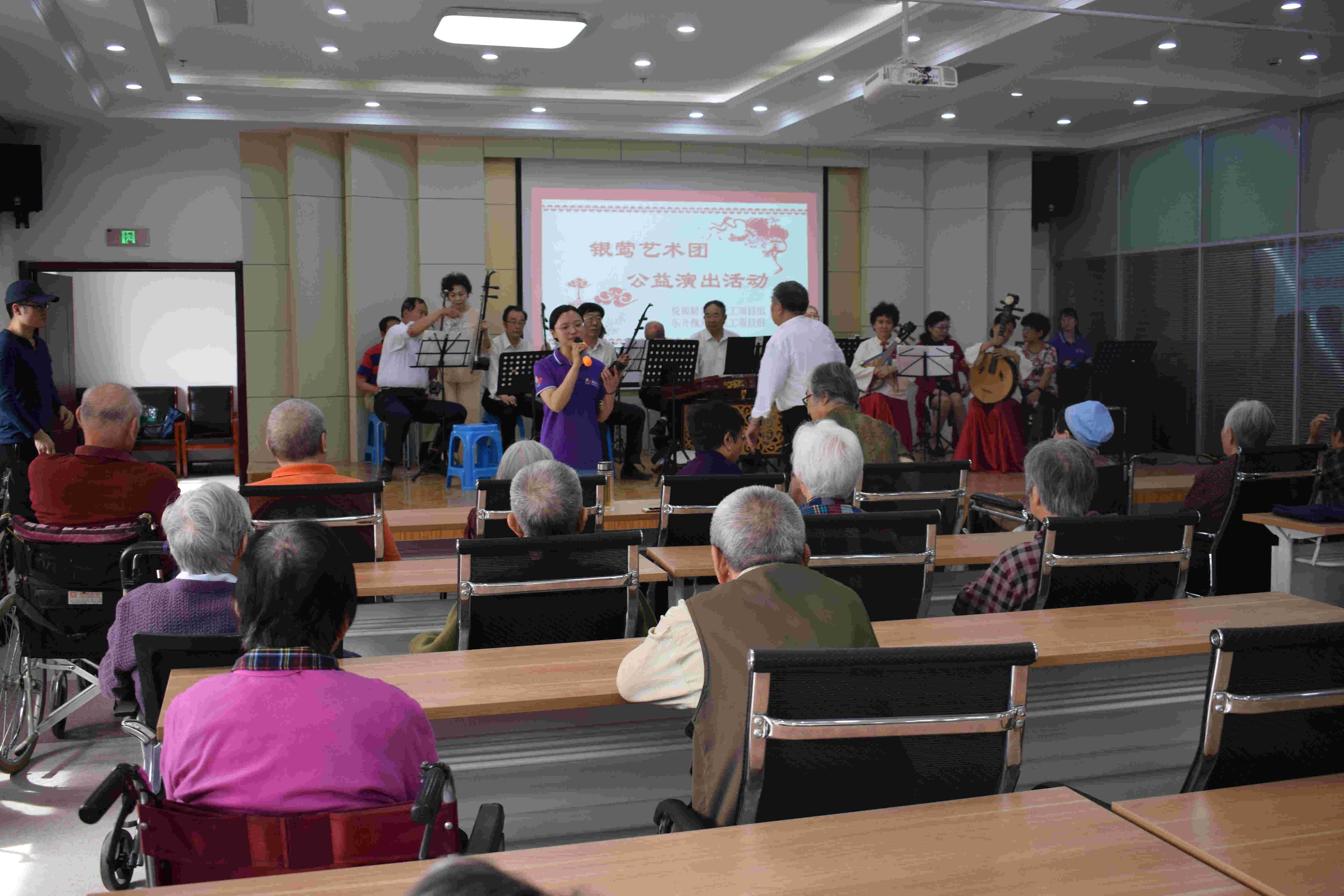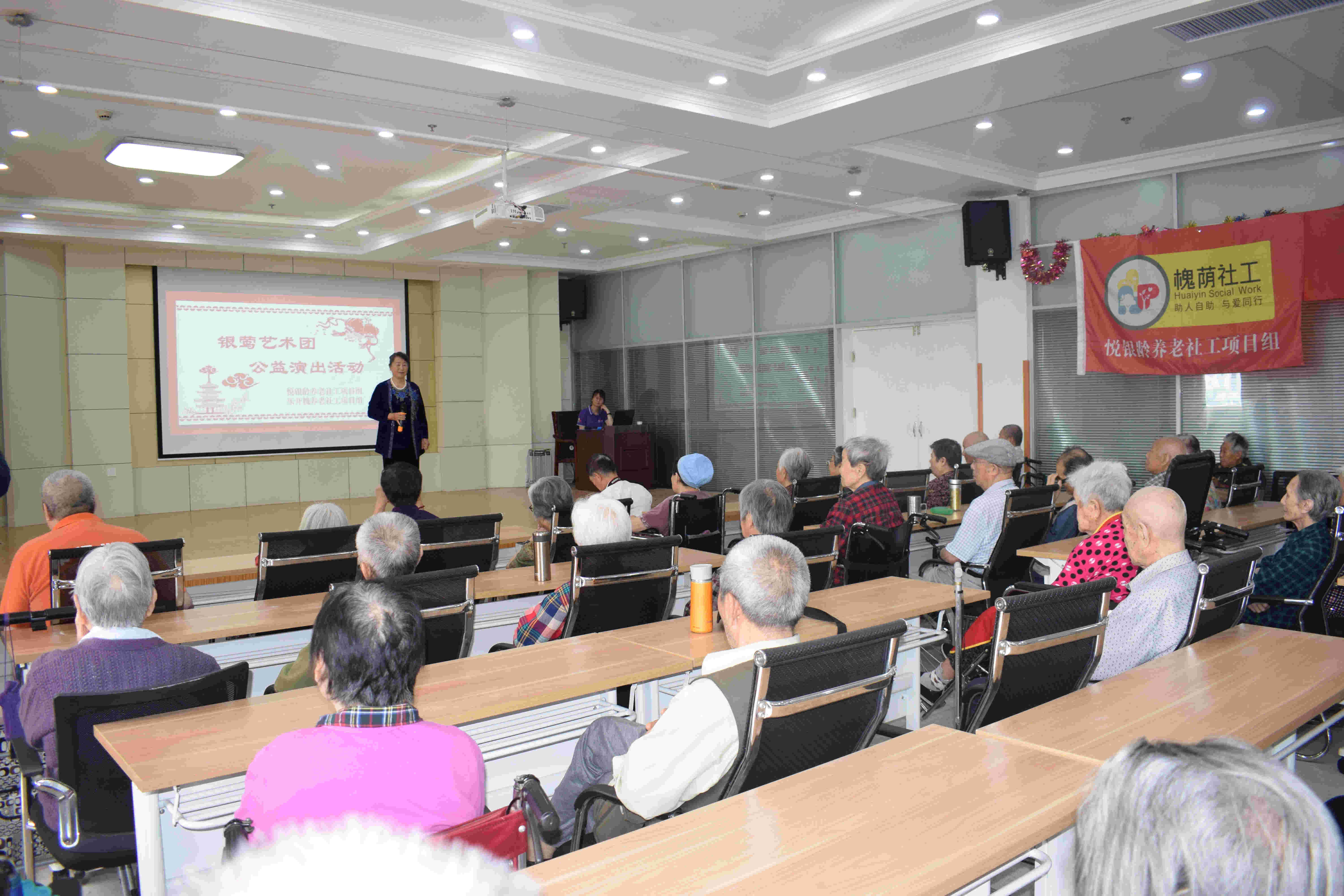 老年社会工作是社会工作中的一个重要领域,在积极老龄化的社会大背景下,老年社会工作者使得老年人的晚年生活更加丰富多彩。莫道桑榆晚,人间重晚晴,为使院舍化生活的老人加强与外界的联系,为福利中心注入新鲜空气,5月28日,悦银龄养老社工项目组联袂乐开槐养老社工项目组组织了本次“银莺歌唱,银龄开‘槐’”公益演出活动,为社区老人和院舍老人搭建友谊之桥。