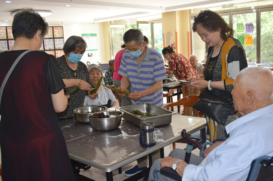 端午节,是非常重要的传统节日,有吃粽子、龙舟竞渡、喝雄黄酒等习俗,而家人一起包粽子、吃粽子,是大多数人的庆祝方式,寄托着家人之间特殊的感情。为了让槐荫区社会福利服务中心的住养老人感受大家庭的温暖和传统佳节的氛围,6月11日上午,槐荫民政社工悦银龄养老社工项目组策划开展了“情系温暖,‘粽’享家人”主题活动,邀请部分老人的家属和老人一起包粽子、迎端午。