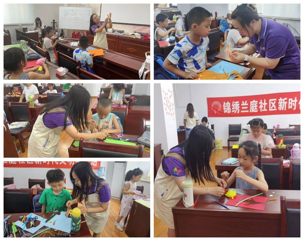 为丰富辖区小朋友的暑期生活,营造辖区孩子们健康成长的良好环境,让他们享受到一个快乐充实的缤纷假期,张庄路街道社会工作服务站联合锦绣兰庭社区居委会联合举办“缤纷暑假 快乐成长”暑期夏令营活动,7月24日下午,暑期夏令营迎来了第二次活动——“做一只会动的小手”益智手工制作,培养孩子的专注力与创造力。