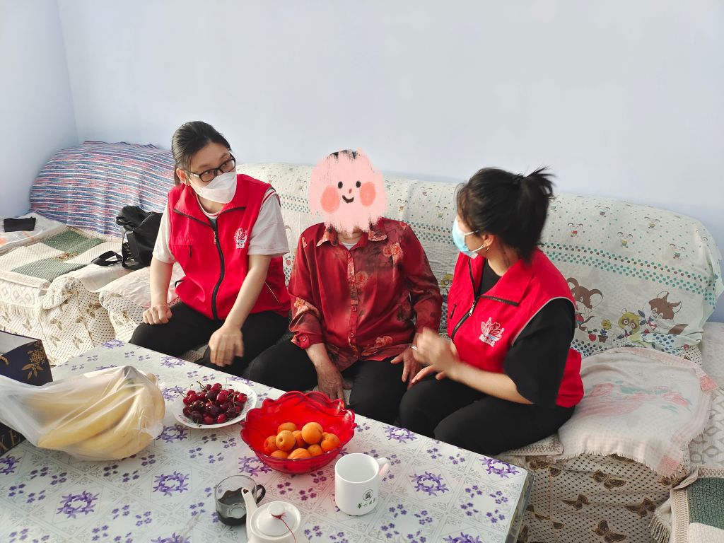 了解到这一情况后,张家洼街道社工站社工联系上了刁大娘说明来意,与她约定好了上门拜访的时间。当社工准时出现在大娘家门口的时候,大娘表现得十分高兴,连声说道:“你们来了,真是太有心了,谢谢你们来看我,快请进来。”进屋后,社工向大娘送上慰问品,耐心地询问其近期生活状况及需求,叮嘱她有困难及时向社工求助。大娘拉着社工的手,泪眼蒙眬地讲起了丈夫离世后,留下自己一人,日常生活格外孤独,经常独自默默流泪,吃不好睡不好,精神状态很差。社工以倾听为主,充分运用陪伴、专注、共情等专业技巧,引导刁大娘倾诉,帮助她纾解内心的负面情绪,提供情感支持。大娘在情绪得到宣泄后,心情好了许多。