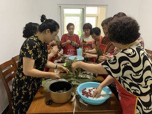 活动中社工站社工、社区两委成员和服务对象一起阅读交流了端午知识、分享了自己的端午记忆、了解了完整的活动流程,活动氛围和谐融洽。在社工的带领下,服务对象一起体验了包粽子的乐趣,除了制作本次活动品尝的粽子,大家还为社区的困难群体制作了粽子。粽子制作期间服务对象互相帮助,其乐融融。