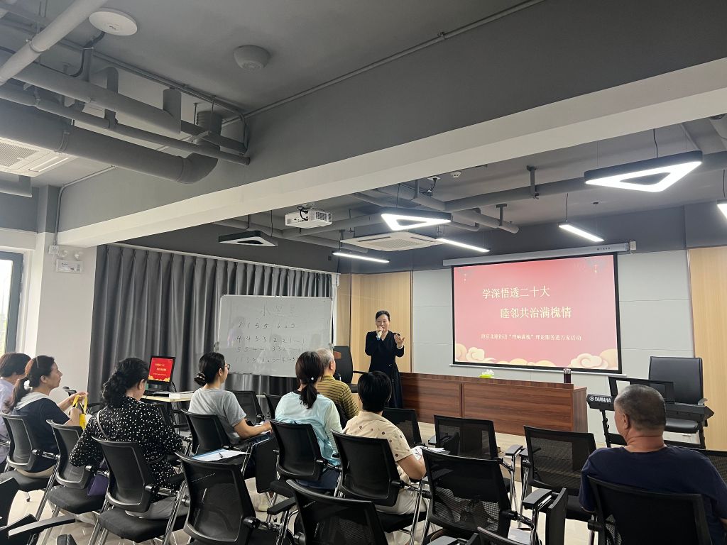 为深入学习宣传贯彻党的二十大精神,凝聚社区党员群众思想认识,推动党的二十大精神家喻户晓,深入人心。9月19日上午,段店北路街道社工站联合街道综合养老服务中心开展“理响满槐”理论服务进万家活动。本次活动邀请社区优秀志愿者常霞老师担任主宣讲员,社区党员、志愿者骨干、社区居民等人前来参加。.jpg)