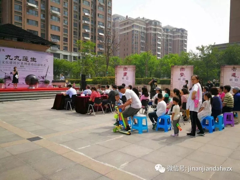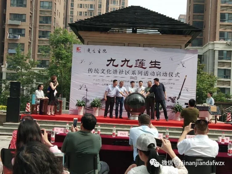 为进一步贯彻落实党的十九大精神,并结合济南市物业管理行业协会、济南市住建局关于济南市物业服务行业传统文化进社区相关方案和工作要求,于 5月27日上午9:30在黄金99景城社区举办了“九九莲生”传统文化进社区启动仪式活动。此次活动由历下区住建局、历下区姚家街道办事处、山东工艺美术学院造型学院主办,山东黄金物业管理有限公司、山东莲生堂文化艺术有限公司、莲生书院承办。
