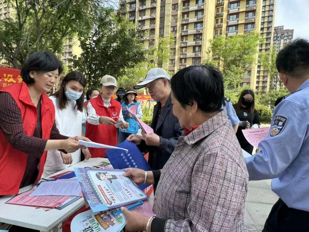 活动现场,社工与拆迁办、司法所的工作人员紧密合作,通过设立咨询台、悬挂横幅、发放宣传资料等多种形式,向广大居民宣传了民法典的基本原则和核心内容。社工用通俗易懂的语言,耐心细致地向居民们解读了民法典中与日常生活息息相关的法律条文,如婚姻家庭、继承、物权等,让居民们对民法典有了更加深入的了解。