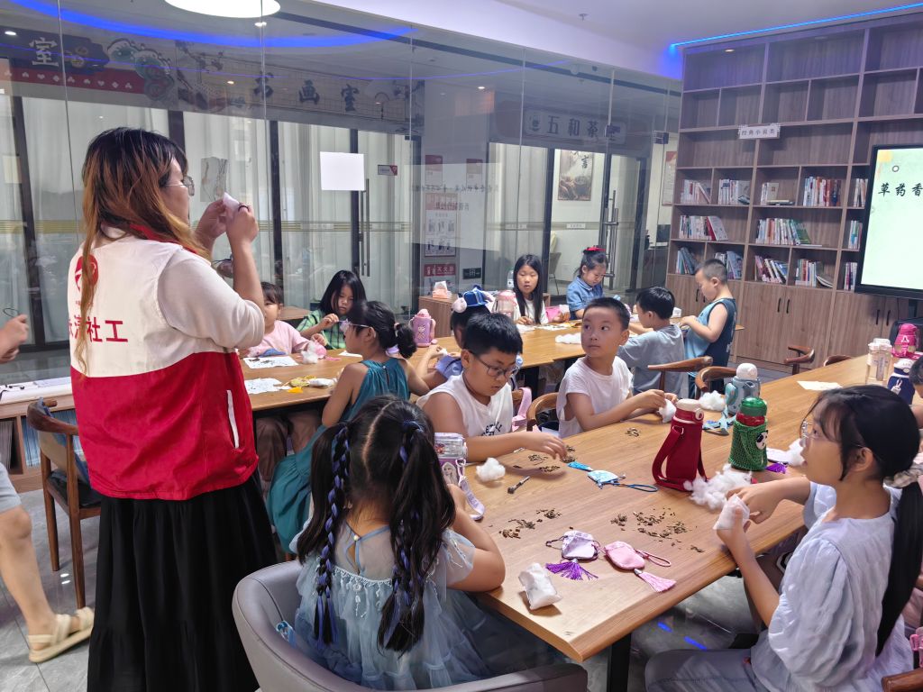 “香”约传统,“药”你健康——文昌街道社工站开展儿童中医药文化科普与香囊制作活动