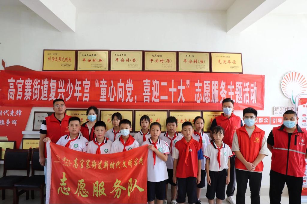 为进一步弘扬中华民族优秀传统文化,培育和践行社会主义核心价值观,呼吁孩子们倡树新时代美德健康生活方式,积极参与文明典范城市创建,8月16日,高官寨街道社工站联合新时代文明实践所、文化站、妇联、团工委走进少年宫——开展“童心向党·喜迎二十大”志愿服务主题活动。