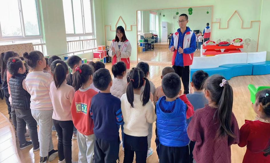 为了增强小朋友们的自信心,培养思维能力,提高主动性,社工提议转换角色,让小朋友们做一次“小小老师”教给社工他们所学的手指操,小朋友们兴致勃勃的边唱着歌曲边做着手指操,时不时的说一句“这里不对,手应该放平,胳膊要抬起来”。