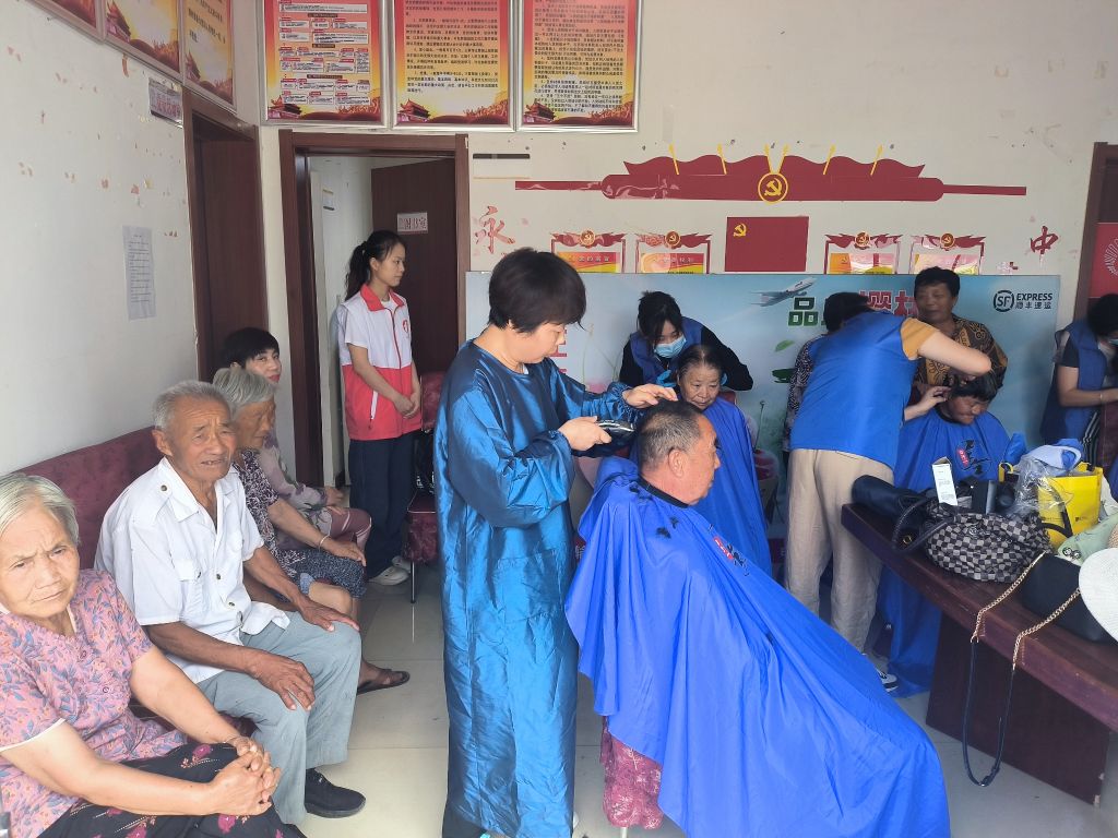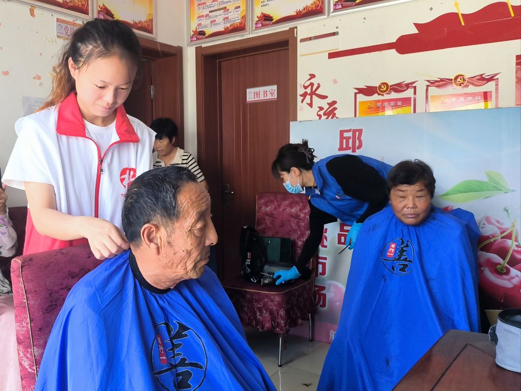 在义剪活动中,一位特别引人注目的志愿者是张明,一位来自日行一善志愿服务团队的骨干志愿者,张明组织志愿团队提前到达邱庄村,带来了走访物资。社工负责维持活动现场的秩序并组织志愿者们分工合作,确保活动顺利进行,还在活动现场细心关怀每一位前来参与的村民。张明和其他志愿者们用专业的技术为村民理发,不仅让村民们焕然一新,更是让他们感受到了社会的温暖和关怀。张明笑着说:“每一次的义剪活动,都是我们用爱心和关怀为社区带来一丝温暖,看到村民满意的笑容,我们的付出就得到了最好的回报。”