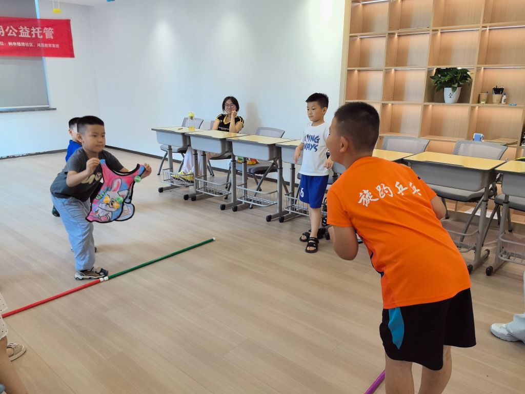 随后,社工带领组员们共同开展趣味运动会,本次运动会集趣味性与娱乐性为一体,设置了“不倒森林”“趣味保龄球”“一圈到底”“趣味躲避球”“知识竞答”五个环节。社工为组员讲解此次运动会各环节的游戏规则,在社工的带领下,孩子们全身心投入到活动中去,互相加油、互相喝彩,整个场地都充满了孩子们的欢声笑语。最终,在经过一上午的精彩角逐,本次室内趣味运动会在欢乐的氛围里落下帷幕,参加室内趣味运动会的孩子们都兴奋不已,纷纷向社工表示,这次运动会非常有趣,既减轻了暑假期间儿童被各种电子产品所“控制”的局面,又锻炼了身体,还交到了新朋友。