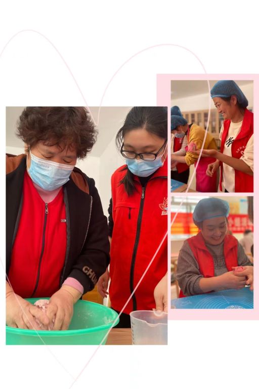 社工与家政工作人员早早的来到现场,提前和面醒发,等待小组成员们的到来。活动开始后,首先面点师傅给我们示范了玫瑰花、福袋、葫芦等各种花样花馍的制作方法,普普通通的面团在师傅手中变成了艺术品,漂亮极了。