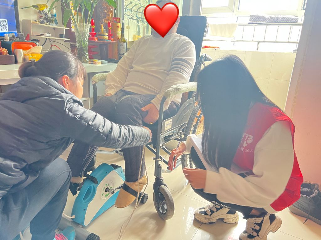 通过上次社区访视以及入户走访,社工了解到陈老师(化名)独居,下半身行动不便,二级残疾,平日由邻居帮忙可以维持生计,早饭经常自己凑活。本次服务,社工为其带来爱心物资及手工水饺,并认真倾听其心声,陈老师(化名)虽长期独居,但性格还算开朗,因为下肢肢体残疾,为促进血液循环需要进行腿部训练,但自己无法完成,只有等邻居帮忙的时候协助其完成。社工见状积极链接邻里志愿服务队的志愿者,确保每天前往陈老师家中为其进行半小时训练。陈老师激动的一再表示感谢。