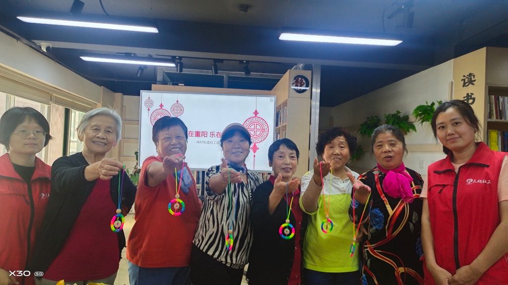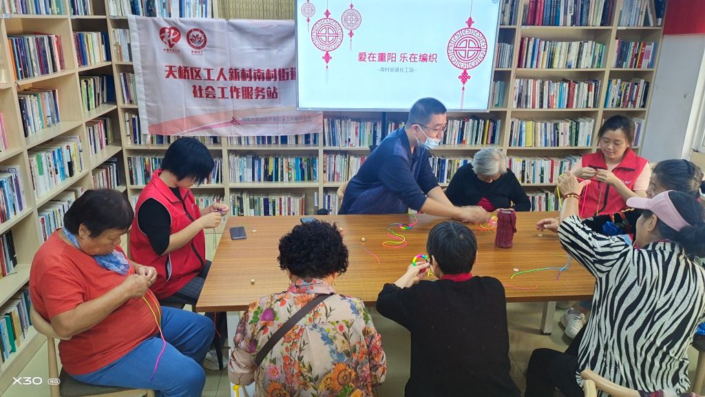风和日丽,最美重阳。中国传统节日重阳节来临之际,为了提升辖区内老年人的活跃程度,丰富晚年生活,进一步推进“‘幸福家园 慈善先行’推动新时代街道社区互助项目”服务,南村街道社工站举办“爱在重阳 乐在编织”老年手工编织教学活动。