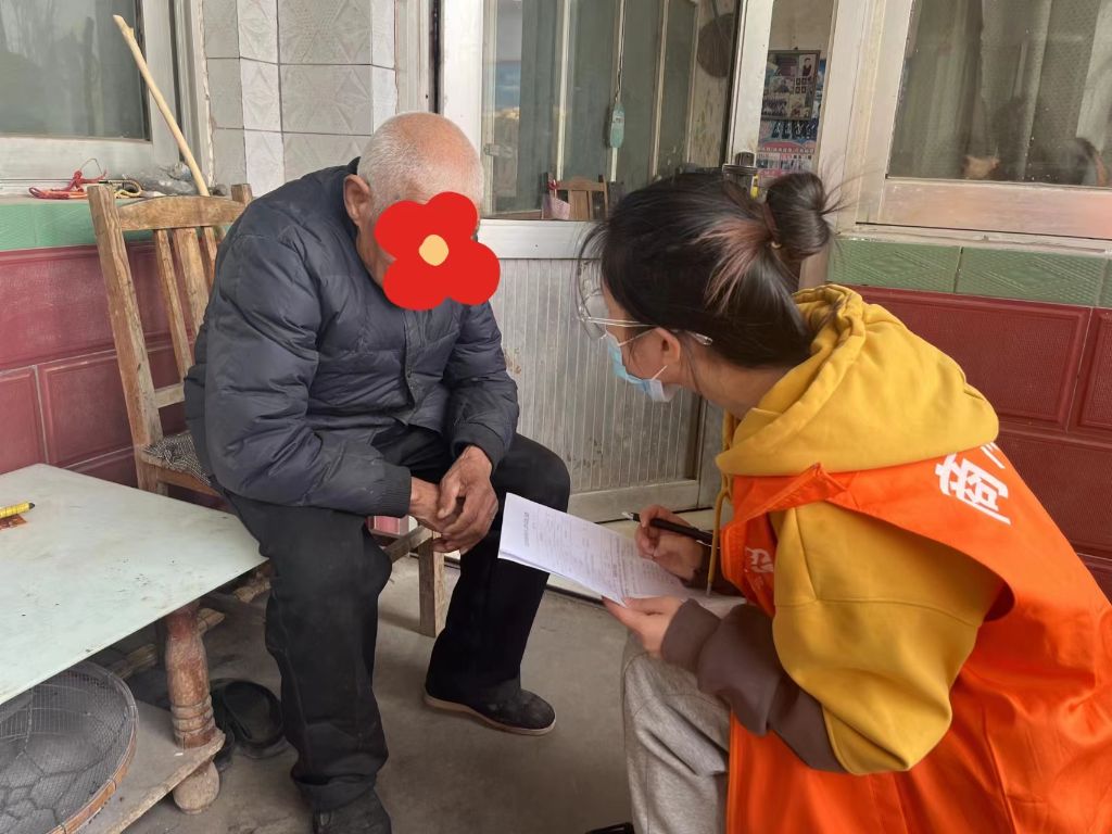 张坊镇社工带领志愿者开展走访摸排困境、失能老人活动。东王村的王大爷老两口已年近八旬,其独生女先天残疾,老伴因病致残,女婿也因伤丧失劳动能力。看到社工到来他热情的拿出水果招待:“你们又来看我了,快进屋吃苹果。现在政府政策好呀,我很满足!前几天你们组织的义诊我参加了,我这一大家子,老的老、残的残,很需要这样的活动,今后有类似的活动记得叫我。”