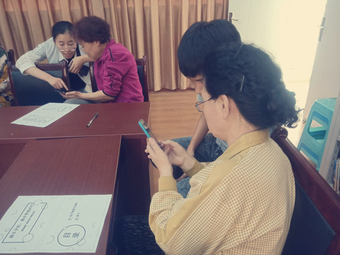 5月15日下午,在济南大学生志愿者的带领下开展了第六节阳光手机学习小组活动。志愿者早早的来到教室做准备工作,学员们热情地打招呼,询问本节课的主要内容。