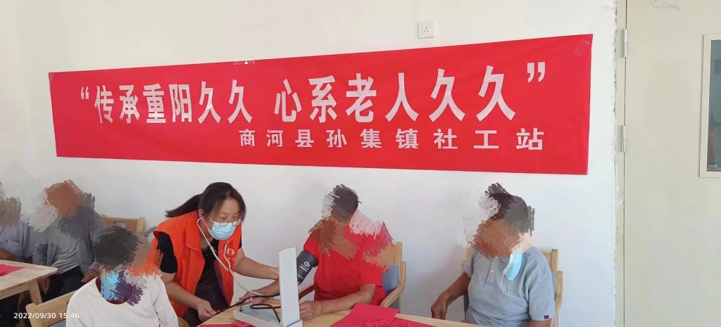 随后资深的医护社工为老人进行了医疗义诊“保健康”。