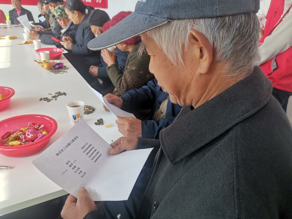 社工从专业的沟通和陪伴技巧角度出发,在活动过程中社工们带着真情、足够耐心的态度去倾听他们的内心苦楚和使其平静,让他们感到“有你我不孤单”,做到以优势视角来挖掘他们自身的特长、资源,用子女的视角去关注他们的所需。为了方便大家有困难能快速找到我们社工,我们成立了“和庄社工暖心服务队”,并留下了我们的联系方式。一位大爷激动的说“这么多年了,心里一直空落落的,特别是遇到难处,都不知道该怎么办,现在好了,有了这个电话以后有难处终于知道可以找谁了!”
