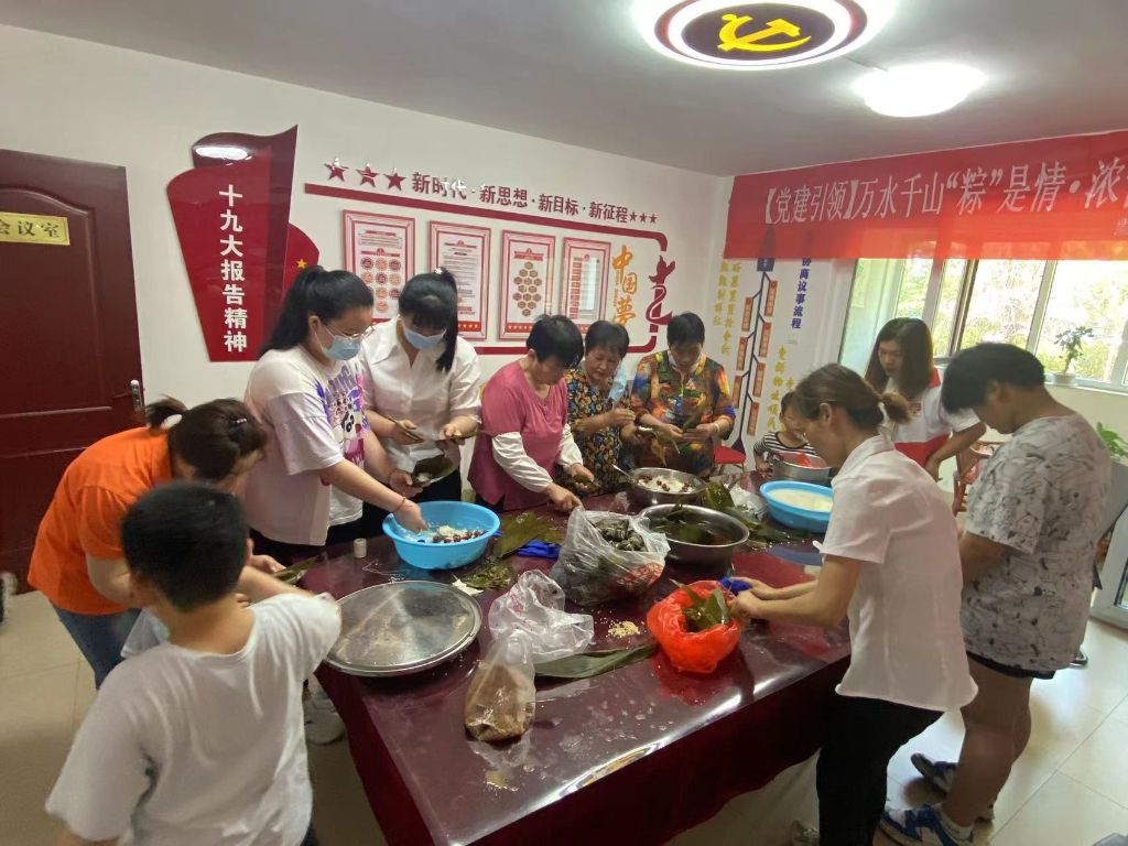一大早,社工就来到活动现场布置场地,把提前泡好的粽叶、糯米等材料整齐的摆好。上午9点,活动正式开始,大家将粽叶做成漏斗状、填糯米、压紧实、封口、捆绑,不一会功夫,一只只各式各样的粽子瞬间成型。最后,社工站一行带着艾草和热气腾腾的粽子对辖区内建档老人、老党员、困难群体进行慰问,送上了端午节的问候,让他们感受到了这个大家庭的关怀和温暖。