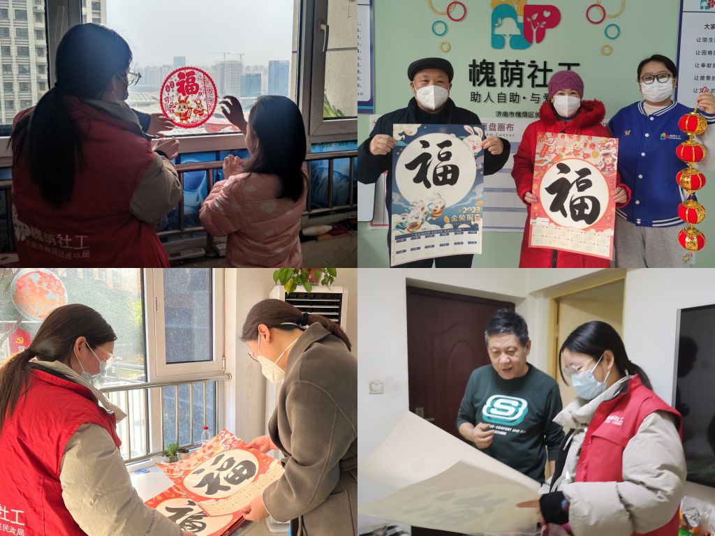岁阴穷暮纪,献节启新芳。从古至今“福”字都寄托了人们对幸福生活的向往,也传递了对美好生活的祝愿。为进一步传承中华民族优秀传统文化,传递浓厚的春节喜庆的氛围,同时入户更新困境人群需求,做好困境群体服务底册,济南市槐荫区兴福街道社会工作服务站(以下简称“社工站”)开展“笔尖传递真情,社工送“福”到家”活动。