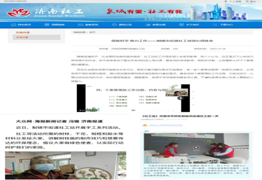2022年,制锦市街道社工站美篇账号发稿64篇,济南社工网站发稿48篇,山东省社工协会发布1篇,大众网、凤凰网、海报新闻等发布文章4篇,通过多渠道、多形式,积极宣传社工站,扩大社工站影响力。