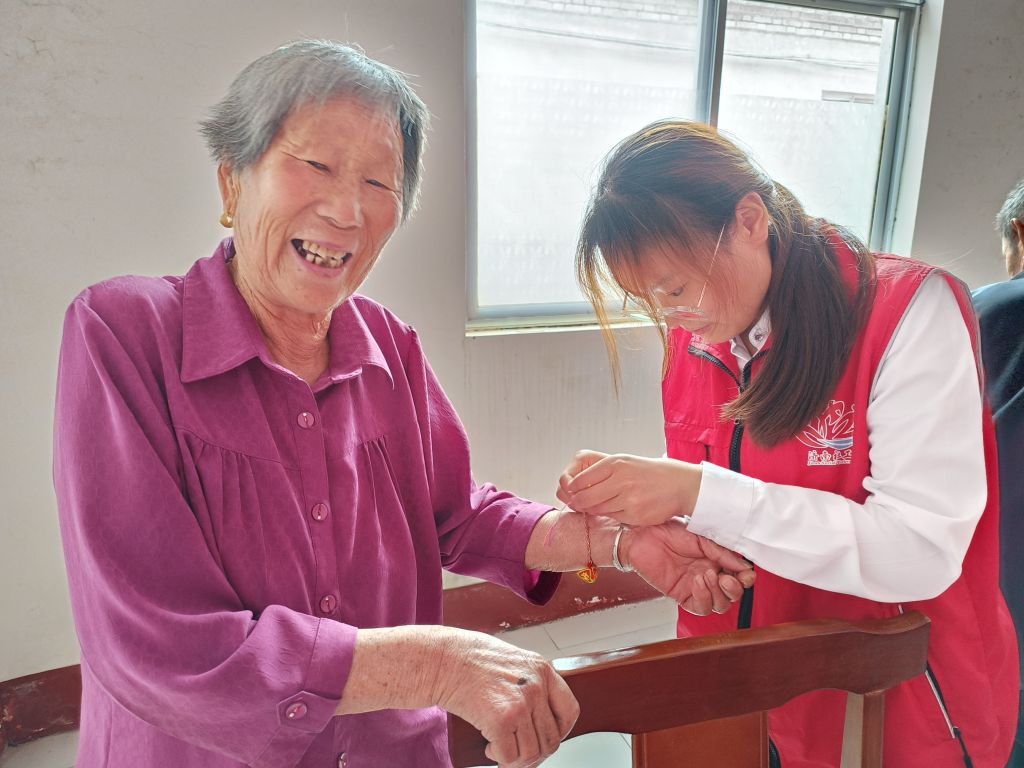 活动最后,社工为爷爷奶奶和小朋友们准备了祈福纳吉的五彩绳,向他们表达节日的祝福,感受来自社工的关心和牵挂。