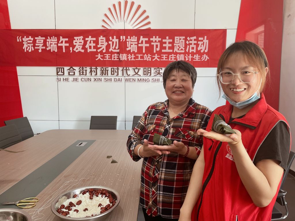 又是一年粽叶飘香时,又是一年端午佳节至。为了让辖区留守老年人深入了解传统节日,弘扬中华民族传统文化,传承中华文明,丰富精神文化生活。6月16日、6月19日、6月22日大王庄镇社工站联合大王庄镇民政办、计生协、退役军人服务站、宣传办、社区社会组织联合会、村两委、新时代文明实践站、志愿者一同前往四合街村、姚家庄村、复宁街村开展“粽享端午,爱在身边”端午节主题系列活动,营造了欢乐、和谐的节日氛围。