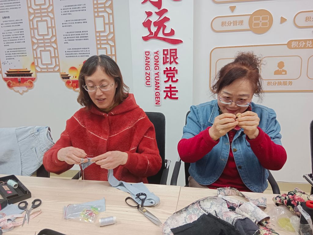 活动过程中,朱阿姨耐心细致的讲解步骤,如何裁剪、如何缝针,在座的阿姨们戴上老花镜全神贯注地学习,熟练地飞针引线,有听不懂的地方就向旁边的队员请教,大家互帮互助其乐融融。在轻松愉快的氛围里,一件件实用的牛仔挎包就做好了,阿姨们迫不及待的背到身上展示给大家看。大家互相赞美着对方心灵手巧,并对朱阿姨表达了谢意。队员们对下一次的活动内容进行了商讨,确定了继续由朱阿姨教导大家用剩下的布料制作一个水杯套。