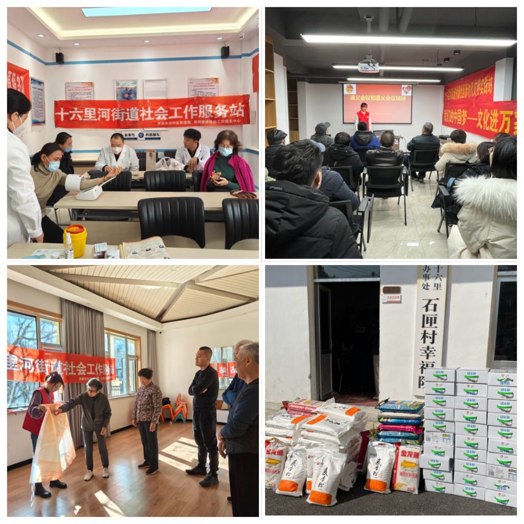 2023年度十六里河街道社工站走访慰问辖区困难、高龄、独居老年人及残疾人100余户,累计服务时长200余小时;开展个案工作4例,累计服务时长50余小时;开展小组工作5个,累计开展小组活动30场次,累计服务时长60余小时,服务200余人次;开展社区活动60余场次,累计服务时长150余小时,服务辖区居民1000余人次;发展志愿者41名,链接爱心企业10余家,链接社会爱心资源折合人民币2000余元;接受督导23次,时长达60余小时;参与培训25次,时长达130余小时;发布新闻稿件70余篇,受到人民日报、大众网、济南社工、社工客等多方媒体平台的关注。