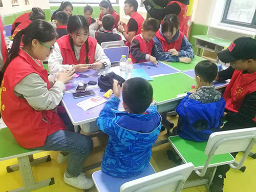 孩子们一放学,就陆陆续续跑到手工课堂教室,看到彩色的卡纸和橡皮泥,兴奋不已。志愿者耐心为孩子们答疑解惑,并一遍一遍的为孩子们演示手工制作过程,确保每个孩子都能学会。针对孩子们的想象力和创造力,还开设自由发挥和作品展示讲解环节。