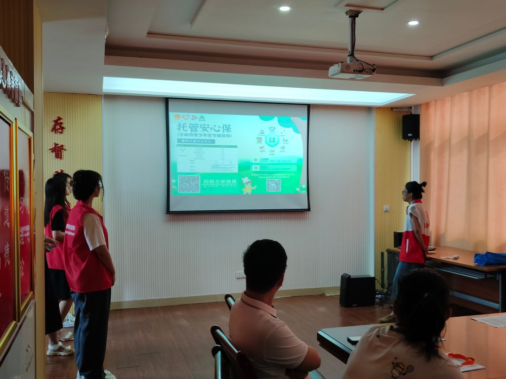 安全无小事,安全问题始终是重中之重。社工向大家介绍了相关注意事项,带领指导家长为孩子们购买暑期托管安心保意外保险,并与监护人签订暑期托管协议及相关材料。同时会上还展示了第一周课程计划及往届暑期公益课堂开课效果展示,让家长朋友们深入了解,三方共建全环境育人融通教育圈。