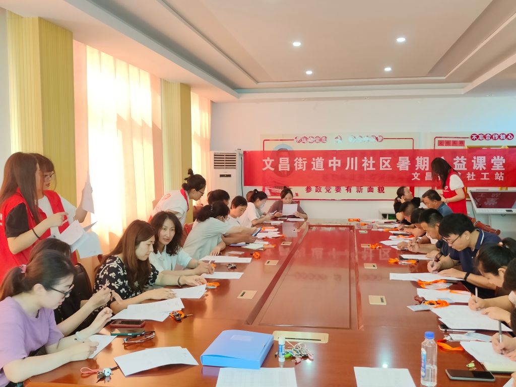 为落实全国青年发展友好型城市试点建设,进一步增强社区教育服务能力,切实帮助家长解决暑假“看护难”的问题,文昌街道社工站联合中川社区积极响应团市委号召,充分发挥社区及社工站服务职能,积极链接各大高校青年志愿者开设“快乐暑假 安全度夏”暑假公益课堂,并于7月15日上午在中川社区党群服务中心召开暑期公益课堂家长会。
