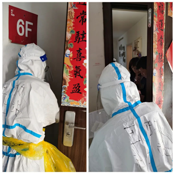 社工配合医护为封控区居民入户采样