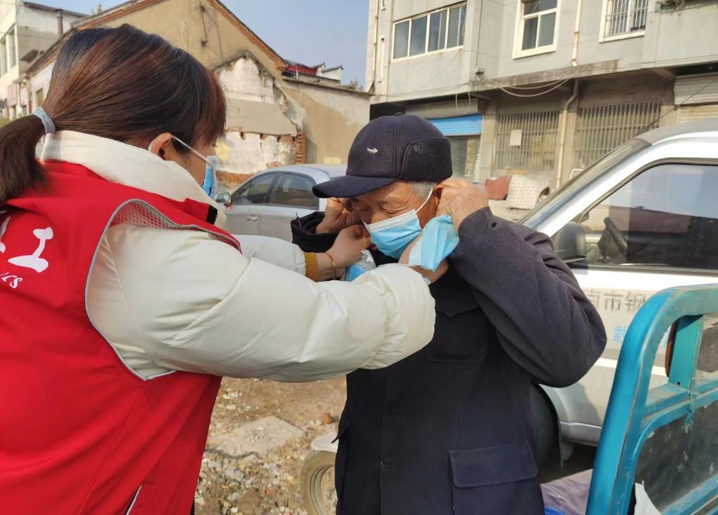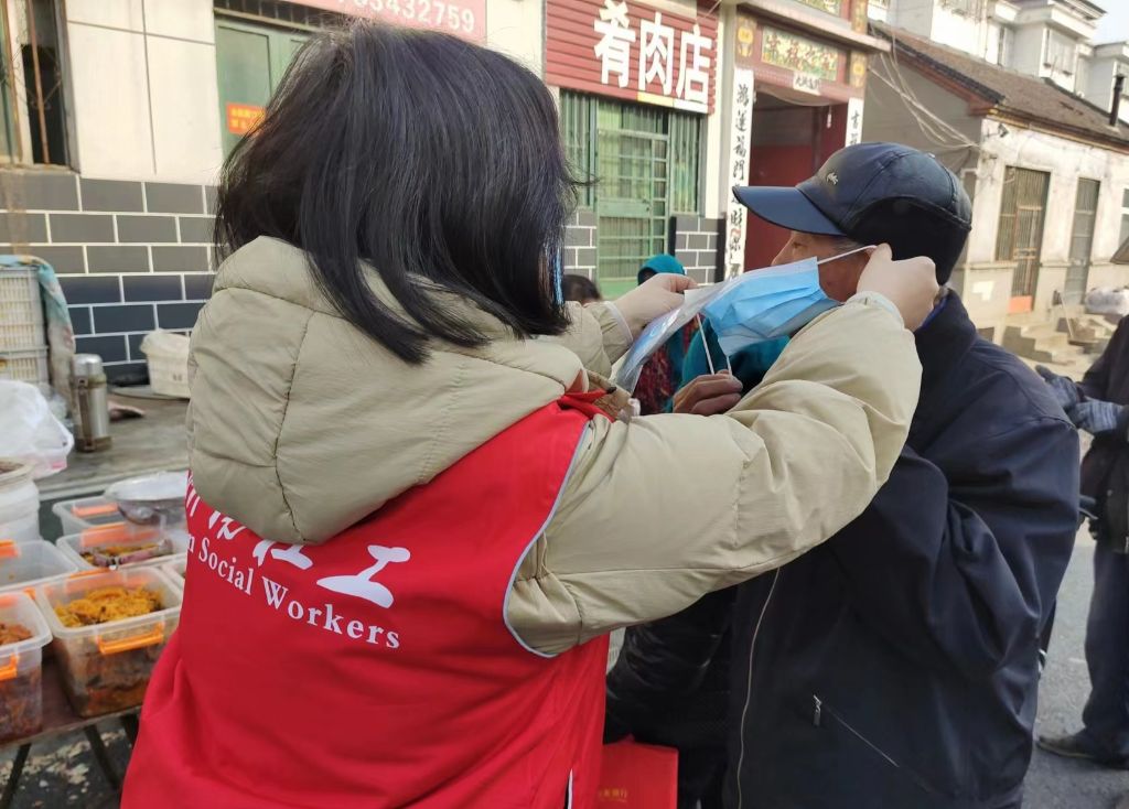 社工赶大集 口罩传真情