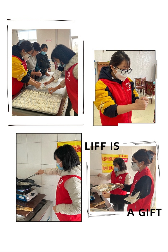 “天时人事日相催,冬至阳生春又来。”12月21日,彩石街道社工站在街道敬老院开展“情系长者,愿你春不寒”包水饺活动。