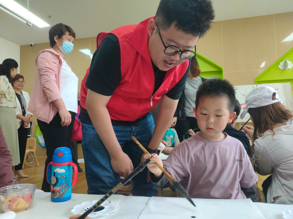 一早整个幼儿园都洋溢着喜气和欢乐。涌动着无穷无尽的欢声笑语。孩子们脸上洋溢着无比欢乐的笑容,整个幼儿园都被这股欢乐的气氛所感染。活动开始社工分发给小朋友每人一张“幼儿园旅游卡”,小朋友们可以拿着卡去自己最感兴趣的活动站点进行打卡,本次活动开设了书法兴趣课堂、泡泡大战、水枪大战、亲子游戏、休闲娱乐游戏区,让他们在这个属于他们自己的节日里放飞自我。