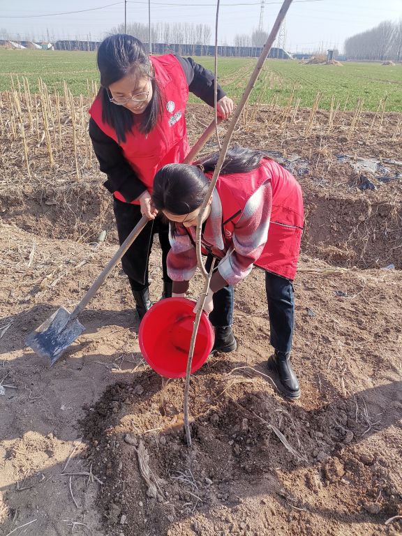 活动开始,社工及志愿者们在指定区域开始了植树活动。大家分工合作,现场一派热火朝天的景象,有的铲土、挖坑,有的栽种树苗、浇水,最后再一起填土踩实,每道工序都有条不紊,最后在社工及全体志愿者的共同努力下,一棵棵小树苗挺立在风中。