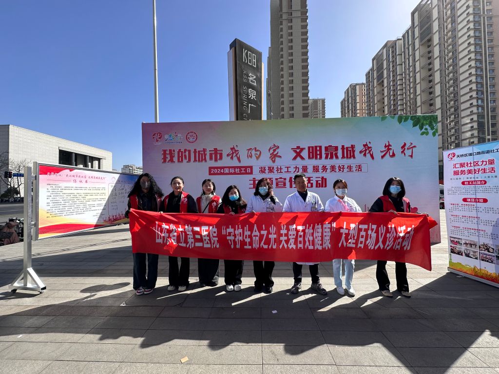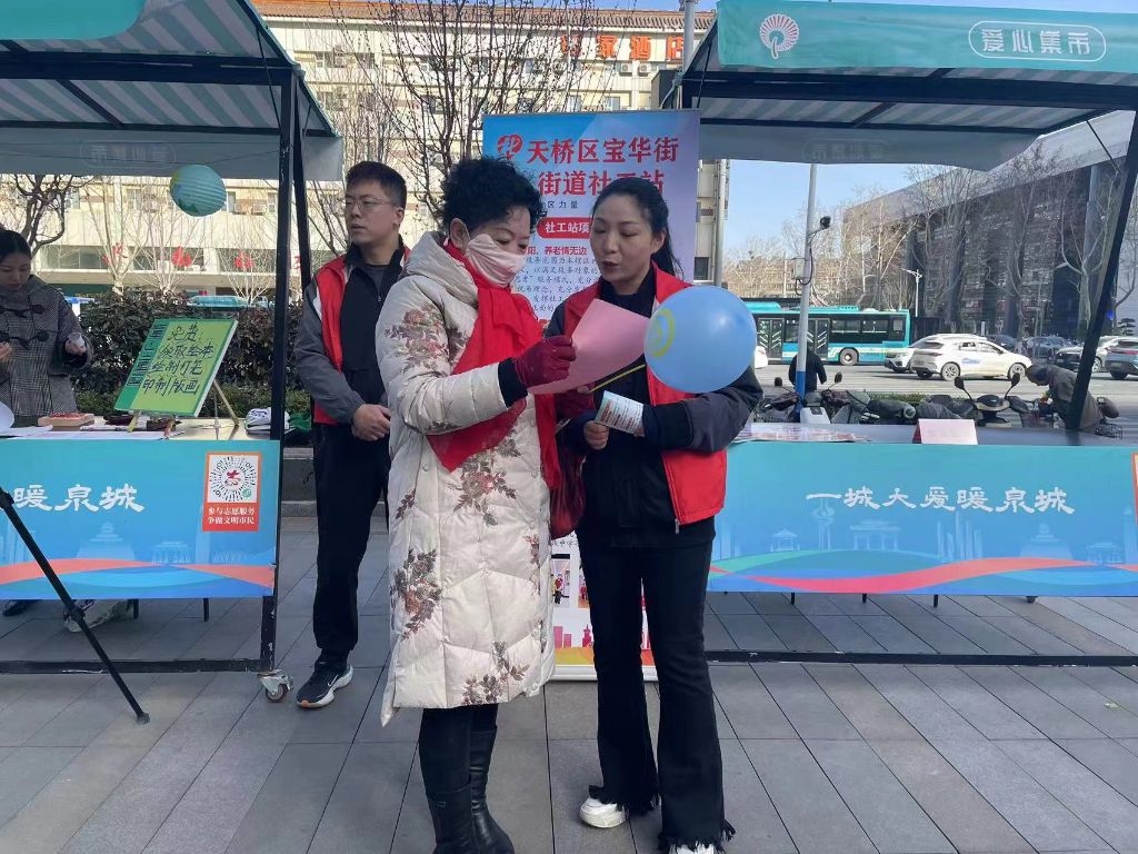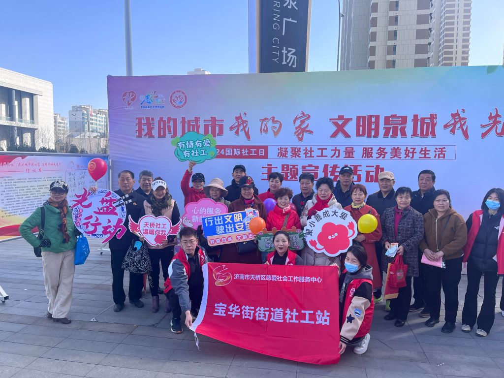 为进一步宣传社会工作专业作用,展示社会服务成效,推动美好生活及五社联动机制。2024年3月19日上午,宝华街街道社工站在天桥区社工总站引领下联合山东省立第三医院、九二零口腔医院、郑老师青少年成长中心、童心童画等爱心企业共同开展了一场别开生面的“汇聚社工力量,服务美好生活”社工周主题宣传活动。
