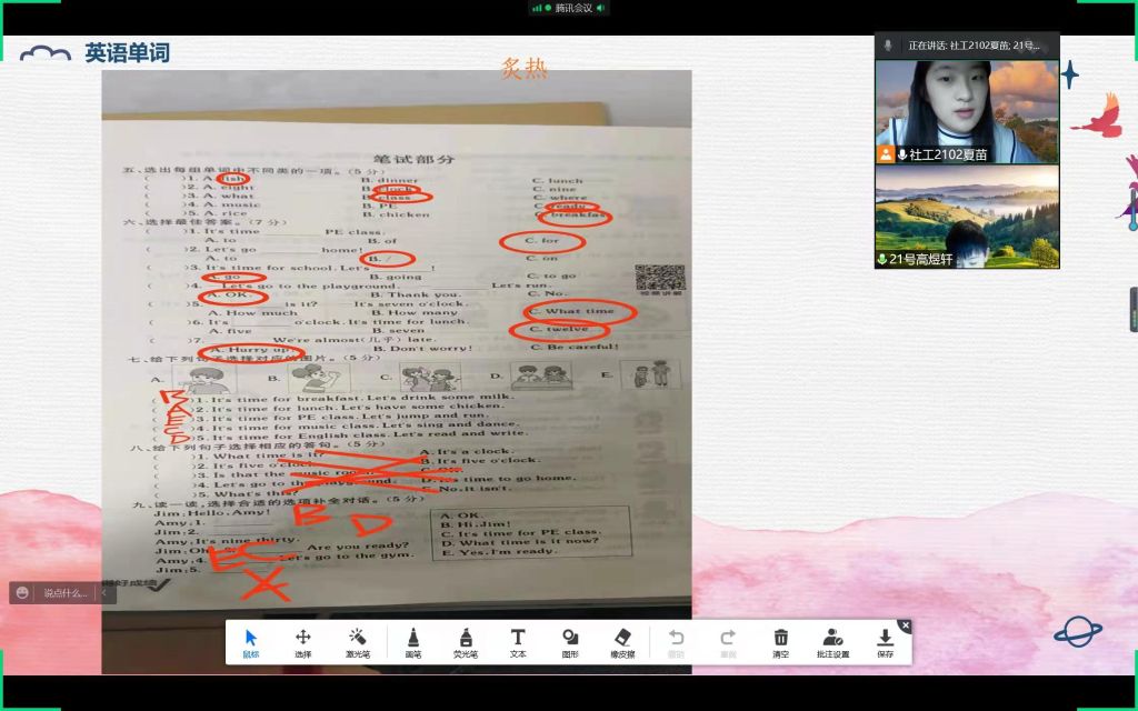 一接通视频电话,轩轩就甜甜地向我打招呼,非常活泼的表示了对我这个小老师的喜欢,我们进行了简单的自我介绍后就进入了课业辅导时间。事先我有和轩轩妈妈沟通过,了解到他的英语单词掌握不好,语文也比较薄弱,所以我让家长发来他的语文写话作业以及一份英语试卷,慢慢引导孩子思考写话应该怎样写,可以按照什么顺序来,并教给孩子一个方法,可以将生活中自己的经历代入到写话中,让写话更真实更生动。对此,轩轩的兴趣十分高涨,兴奋的告诉我,他将生活中的经历通过类比写到写话中,很快完成这篇写话,并表示学到的这个小方法很实用。除此之外,针对轩轩英语单词掌握不太好的情况,我引导着他逐字逐句地将整张试卷通读下来,在完成题目的同时纠正他的发音,指导他生疏或者不会的英语单词。一个小时线上辅导很快过去了,和轩轩互道晚安后,这次线上辅导也愉快地结束了。