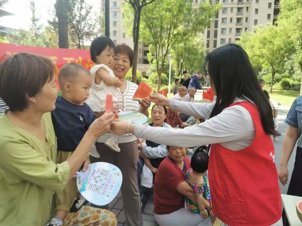 活动现场,社工向参与活动的居民介绍了立秋节气的由来,并给大家分享了关于立秋节气的小知识:“进入秋天后,早晚开始变得凉爽,但是白天依然炎热,这是哪个节气的现象?”、“‘贴秋膘’与‘秋老虎’是什么意思?”......在活跃的气氛中,大家对立秋节气知识留下了深刻印象。随后,社工与参与活动的居民一起探讨立秋的相关的习俗:“啃秋”即在立秋之日啃吃西瓜,意寓用西瓜“啃”去余夏暑气,“啃”下“秋老虎”,迎接凉爽的秋季。志愿者为大家切好了西瓜,邀请其一同品尝。“我第一次跟这么多人一起吃西瓜,真是太开心啦!”一位小朋友笑嘻嘻地说道。大家手捧甜甜的西瓜,露出愉快的笑容,啃出了迎接秋日的美好心情。