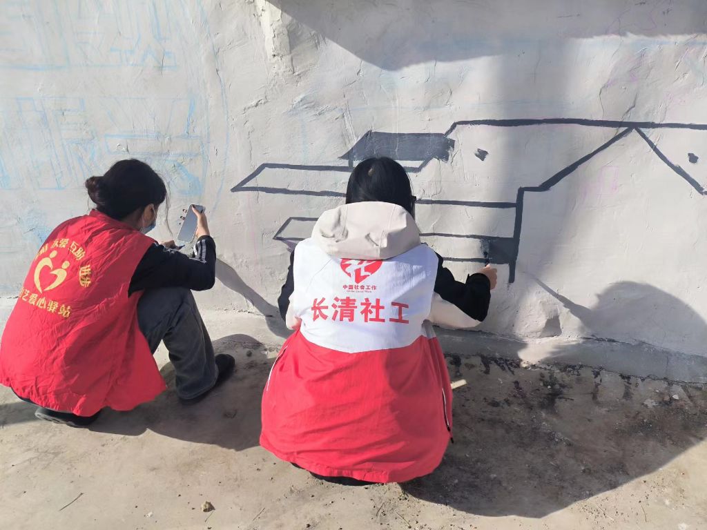画笔传递时代精神,墙绘扮靓美丽乡村。为进一步美化社区公共区域环境,绘就新时代乡村振兴的美丽画卷,推动乡村呈现新气象,点亮美丽社区。2023年12月9日至10日,五峰山街道社工站链接山东艺术学院美术系志愿者来到王峪村,进行墙体美化彩绘制作活动。为美丽乡村建设增添一抹绚丽色彩,打造长清社工“社区基金微治理,一枝一叶留印记”的独特魅力新阵地。