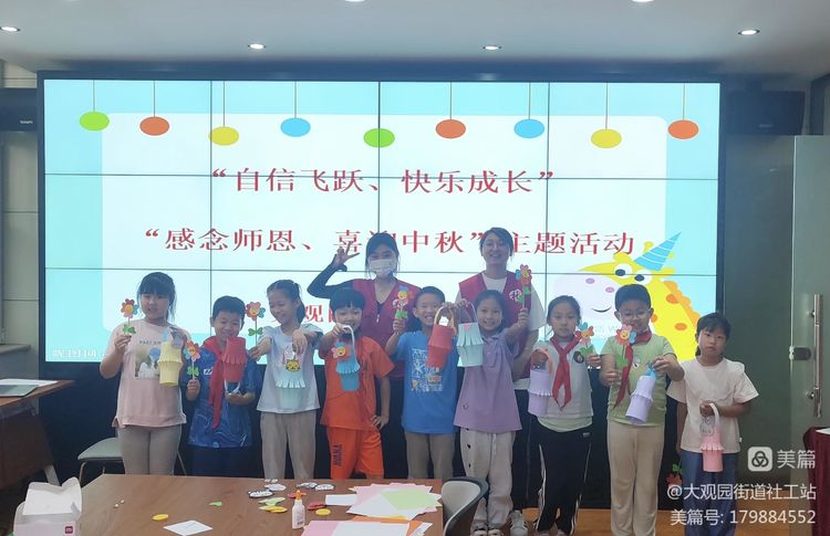 在双节来临之际,为培养青少年尊敬师长的意识,弘扬中华传统文化,提升社区青少年的动手能力,培养青少年自信心,2022年9月8日下午,大观园街道社工站开展了“感念师恩、喜迎中秋”青少年手工DIY活动。孩子们用自己的巧手为老师制作一份特殊的礼物。
