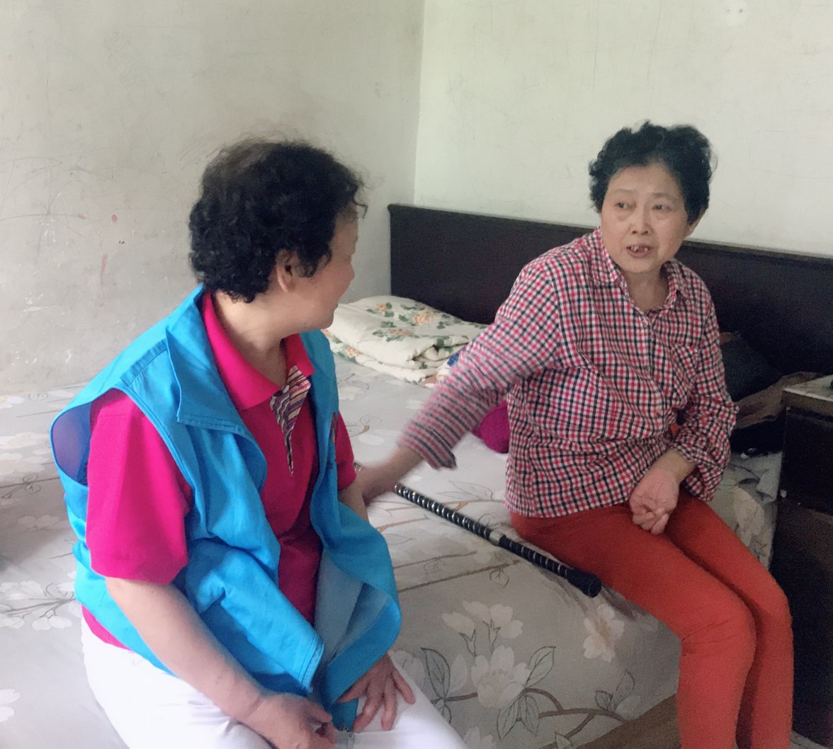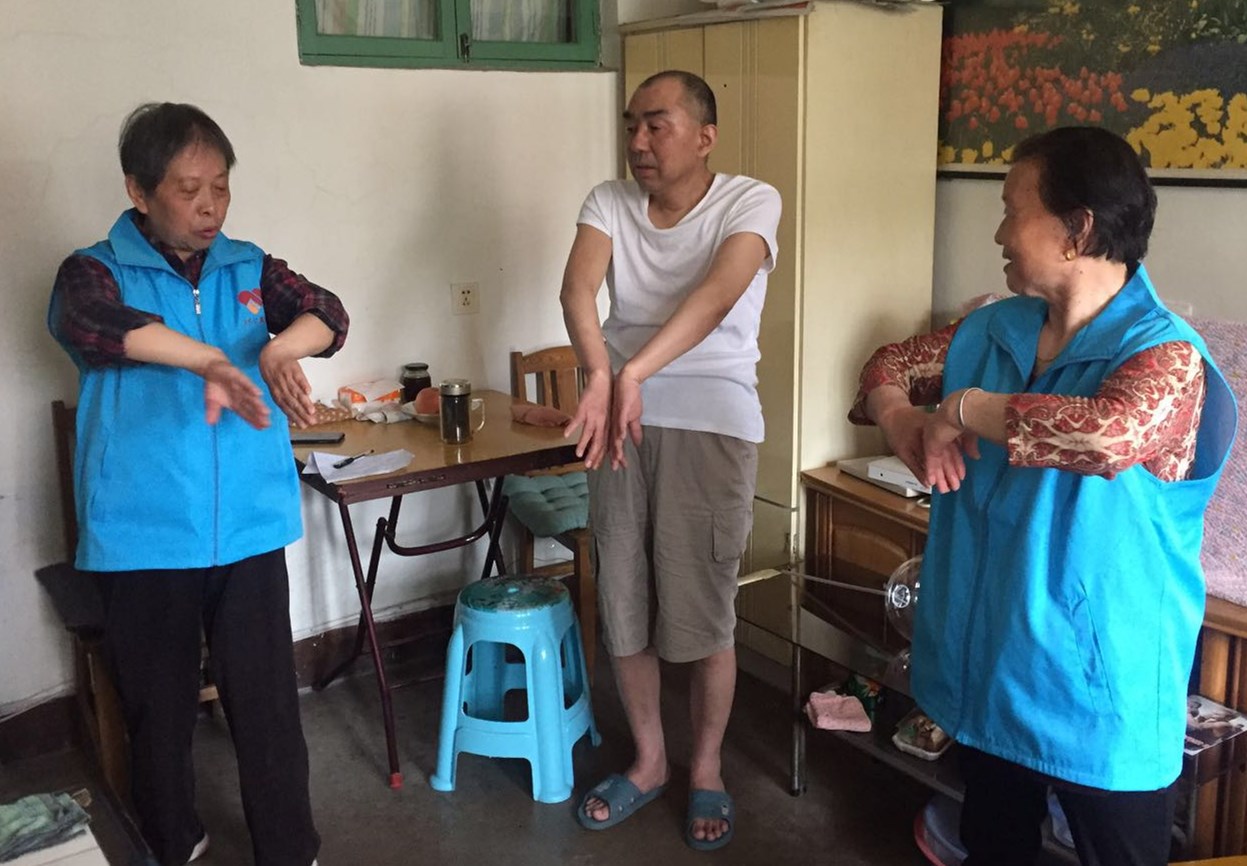 胡志慧老人今年67岁,由于突发脑溢血而留下后遗症,左手无法抬起,右手只能做简单动作,平日护工只有每天上午去打扫卫生,收拾家务,做好午饭就会离开,女儿需要照顾外孙,今天匆匆忙忙的赶回来送下东西,又赶到医院为老人拿药,老人因为腿脚不便,很少出门,一天内几乎无人陪同非常孤独。今天,志愿者来到家里陪她谈心聊天,她觉得没有那么烦闷了,敞开心扉吐露心事,老人表示非常欣慰,既能得到相应的训练,又能感受到社区对残疾人的关心与照顾。